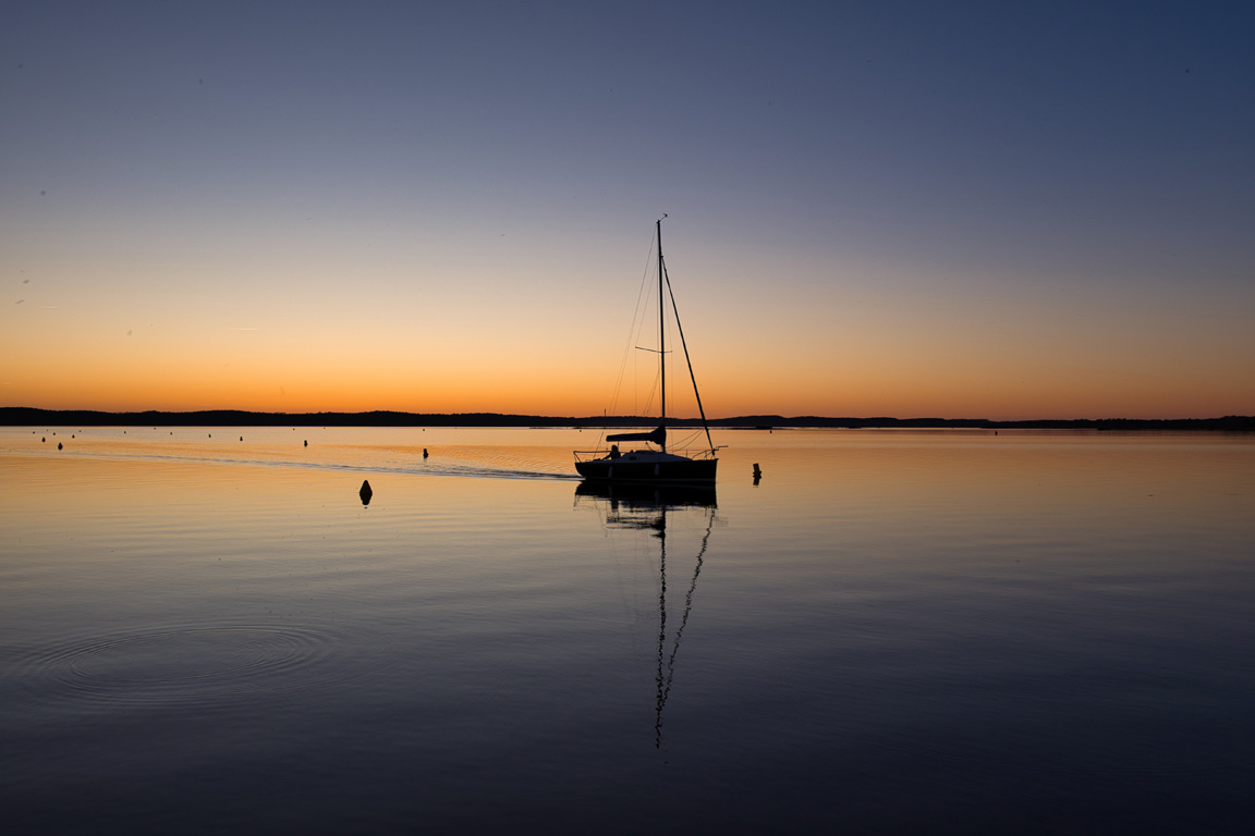 Sélectionné : Lac de Hourtin : retour du voilier au crépuscule de Jean-Baptiste Higounet